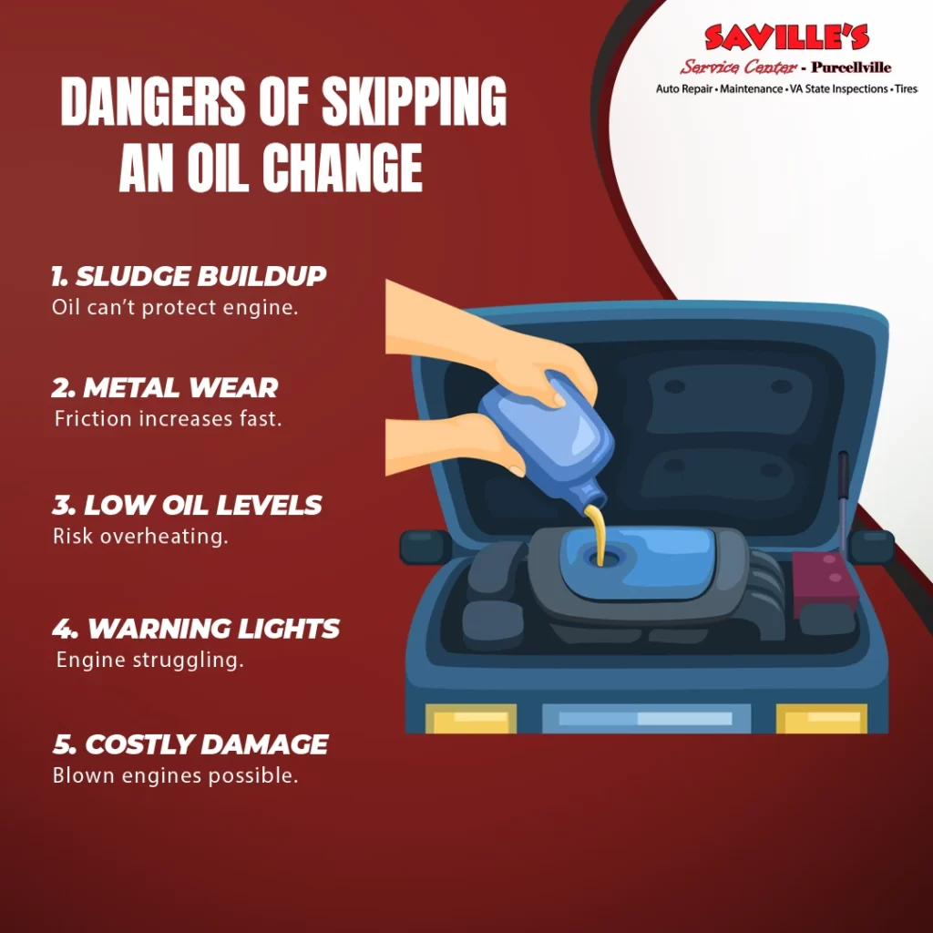 - Skipping oil changes leads to engine sludge buildup, which hampers performance and protection.